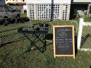 OH cleaned up the tomatoes that weren't producing and we planted some new seeds. The previous seeds must have got carried away by ants, but OH still insists on planting them in the ground???? Oh well. OH has also been selling seedlings out the front of our house. We have made $8 so far which pays for the seeds for the couple varieties we sold which is nice.
